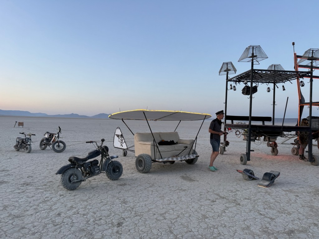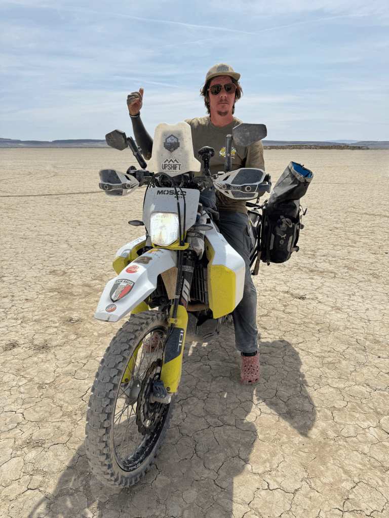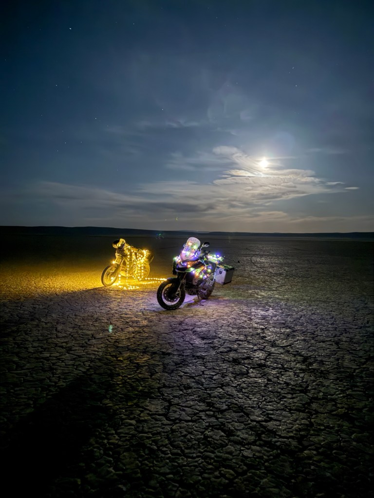 Alvord Desert is a dry lakebed in Southeast Oregon — the Steens Mountains are directly to the West of them. The Alvord Desert is roughly 7×12 miles, making it 35 square miles larger than San Francisco (which is 7×7)!